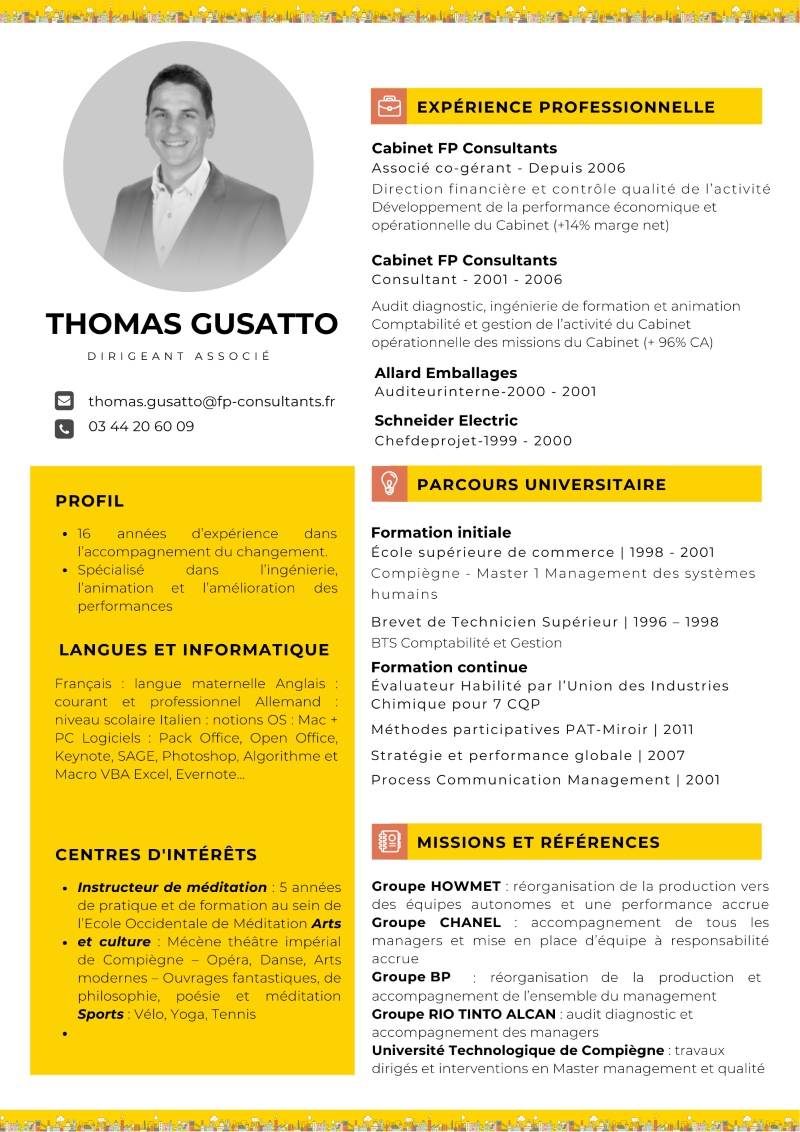 Thomas Gusatto est titulaire d’un Master 2 chargé d’affaires à l’École Supérieure de Commerce de Compiègne.